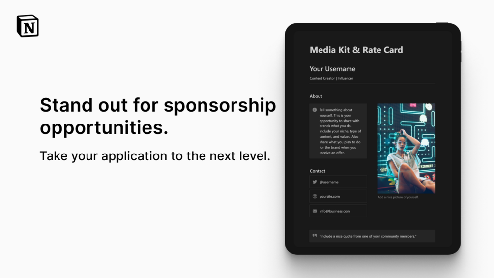 A ready-to-use template for content creators to take your sponsorship application to the next level.